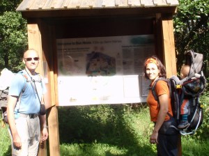 Se puede dejar el coche en dos sitios, uno cerca del pueblo (Glen Nevis), y otro sale del Youth Hostel, 1,5 km más adelante – te ahorras un trozo, pero está más empinado – . Queríamos dejarlo en el segundo, pero nos equivocamos porque por allí hay unos cuantos parkings, y después de dar unas cuantas vueltas ya no teniamos claro cual era… Pero fue para bien, porque hay una tienda e información sobre rutas, etc. que merece la pena visitar. Es el parking de Achintee.