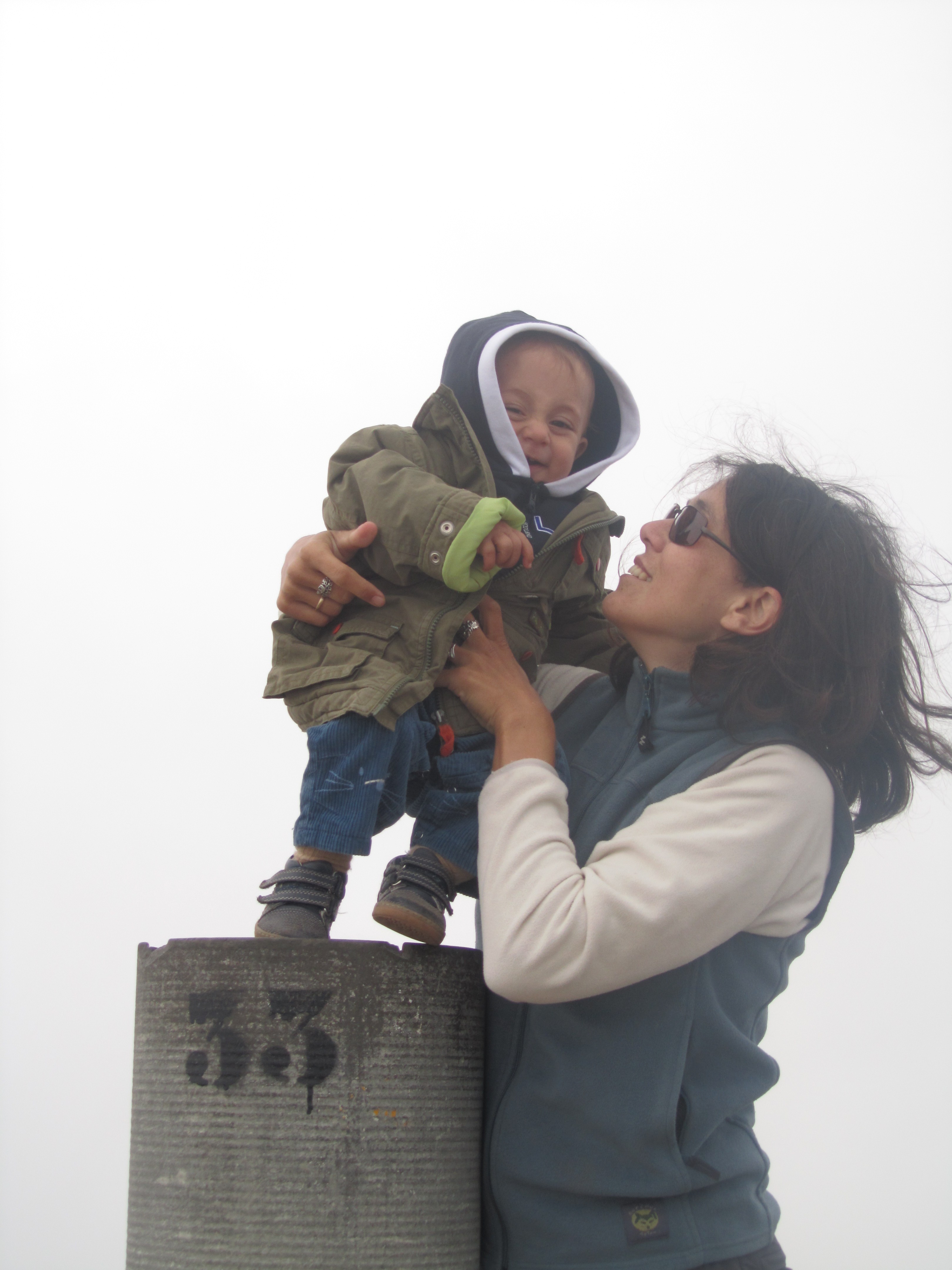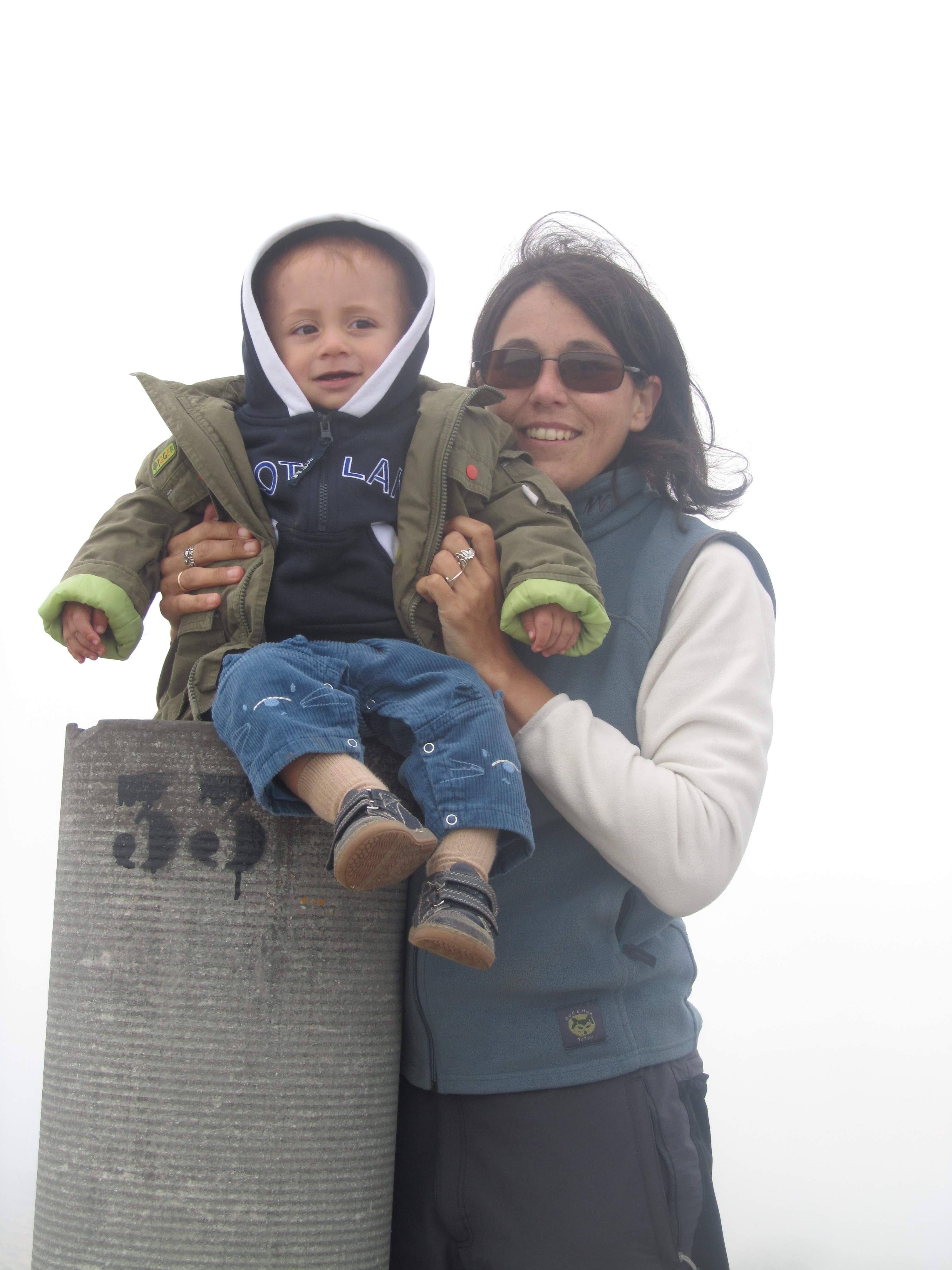 Y por fin se llega a la cima 🙂 Allí Nico tenía frío, y estaba incómodo, así que la foto-cumbre familiar no quedó muy bien con el peque llorando…