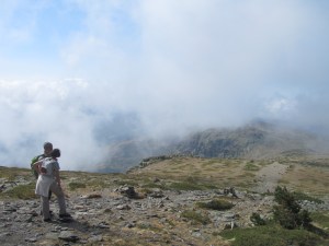 Al final, como me encontraba bien, e ibamos a un ritmo tranquilo, llegué con ellos a la cima de Peñalara. Como el día anterior el ginecologo me había dicho que parecía que el peque no tenía muchas ganas de salir, aún faltaba un poco para salir de cuentas y me encontraba bien, me animé hasta el final. Iba en el grupo el presidente de la federación madrileña de montaña, que no paraba de preguntarme si estaba bien, que si me iba a poner de parto q avisara, jajaja. Me dijo q al niño le iba a regalar la tarjeta de federado de montaña, así que Nico está federado prácticamente desde que nació 🙂